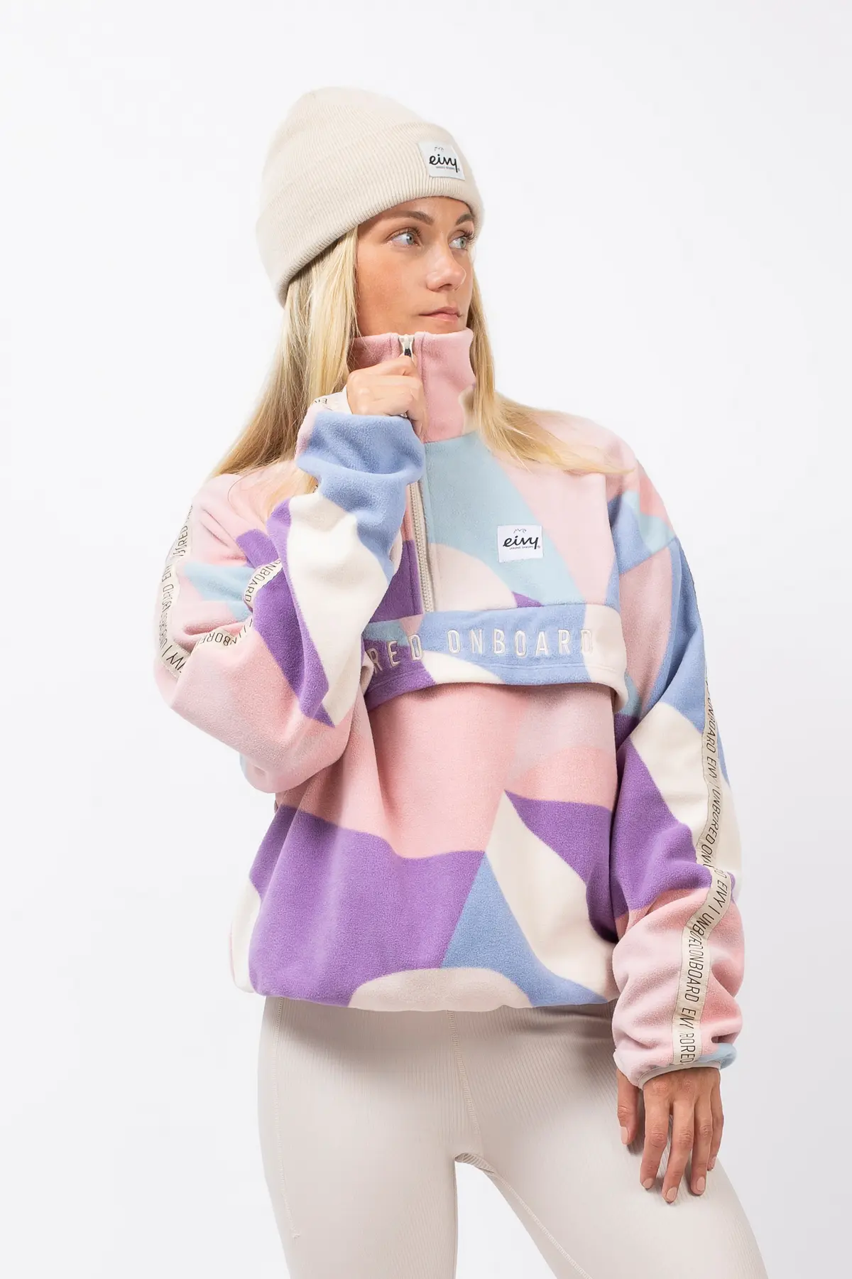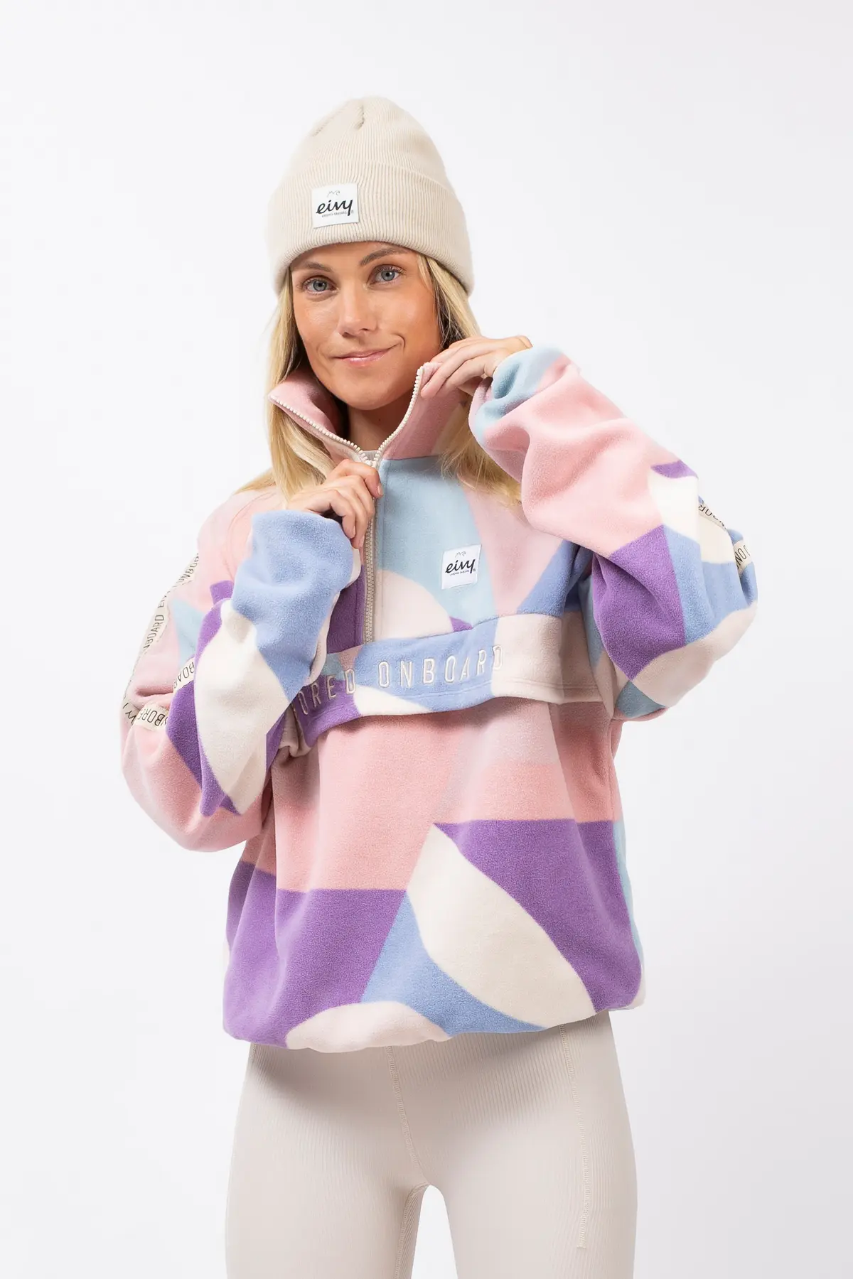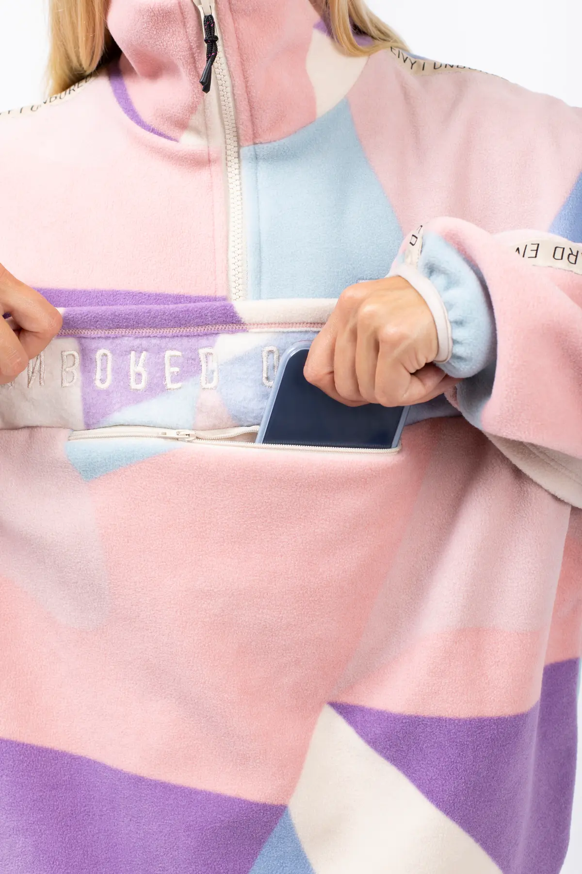 Ein angenehm weicher Fleecepullover in leicht oversized Passform für einen auffälligen Look, in Pastellfarben. Der warme Kragen lässt sich dank den YKK®-Reißverschluss öffnen und schließen, ebenso die geräumige Fronttasche.