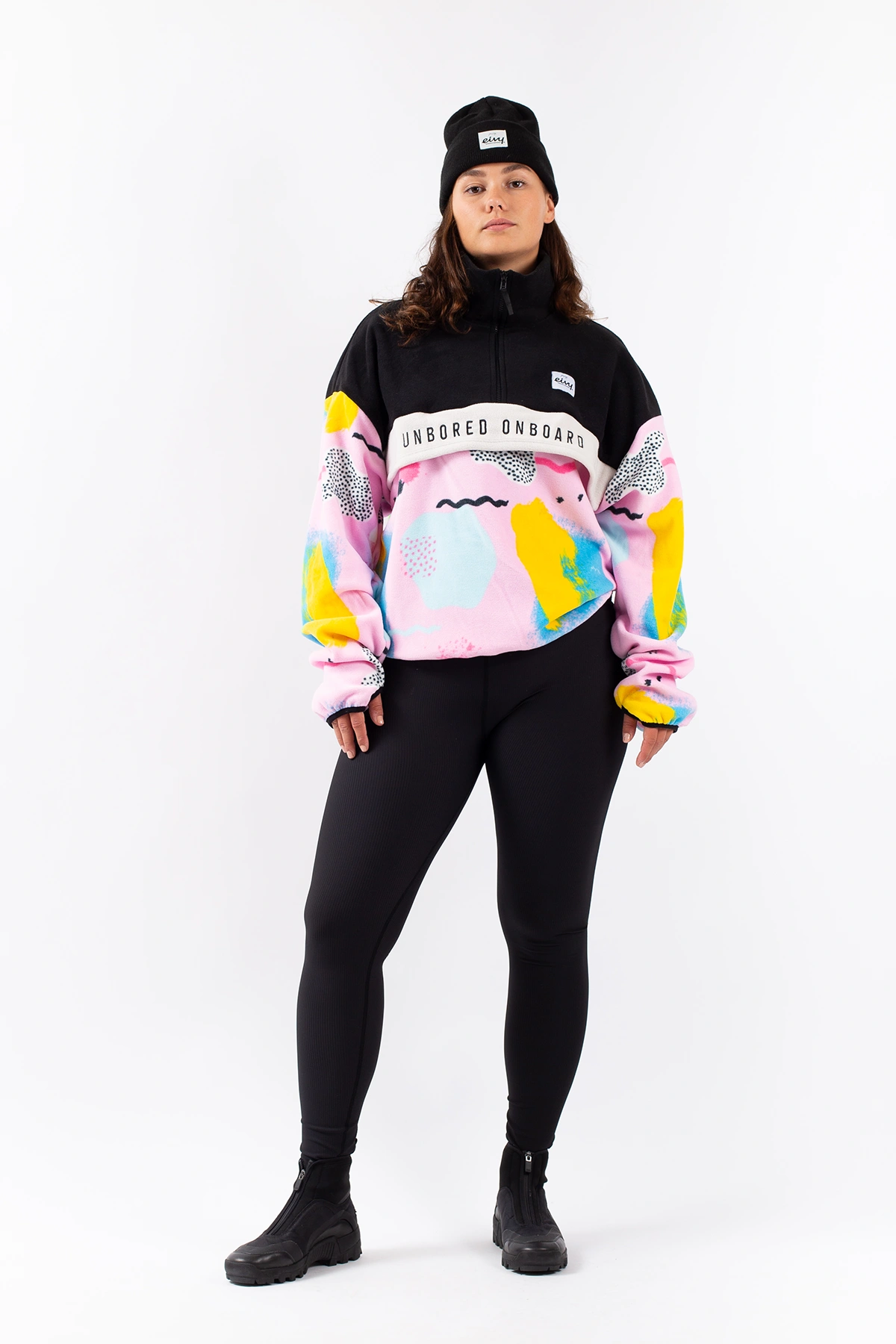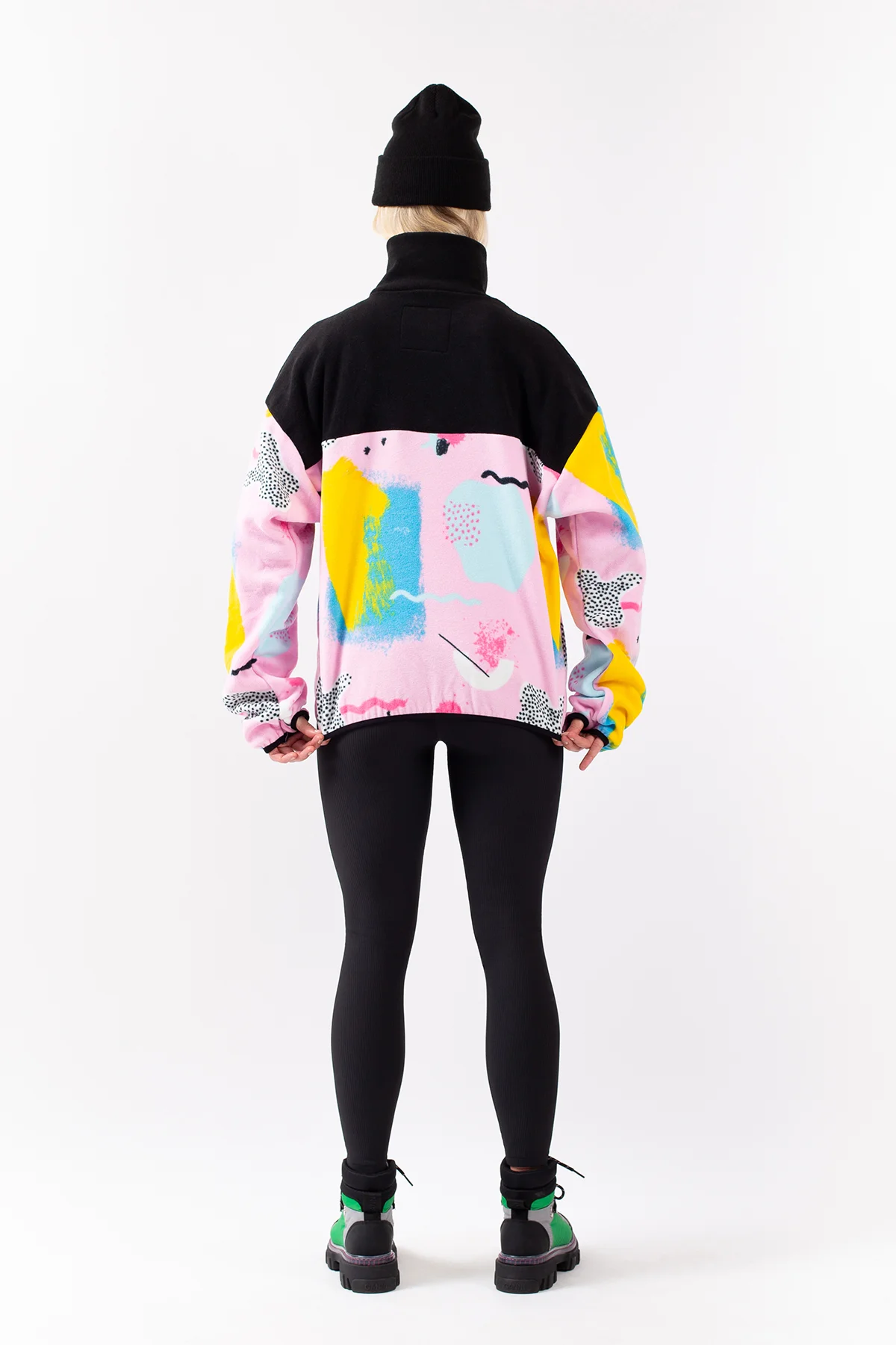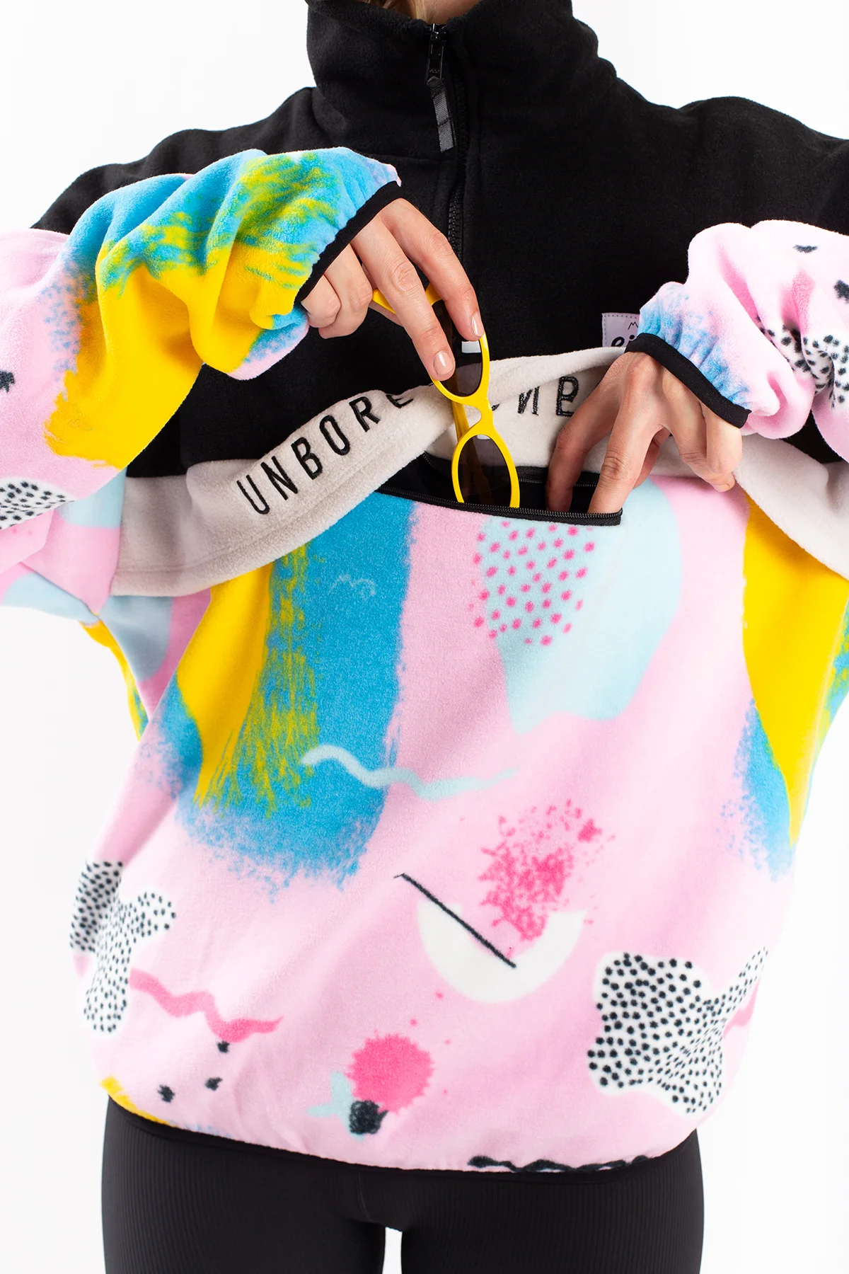 Ein angenehm weicher Fleecepullover in leicht oversized Passform für einen auffälligen Look, im 80's-inspirierten farbfrohen look. Der warme Kragen lässt sich dank den YKK®-Reißverschluss öffnen und schließen, ebenso die geräumige Fronttasche.