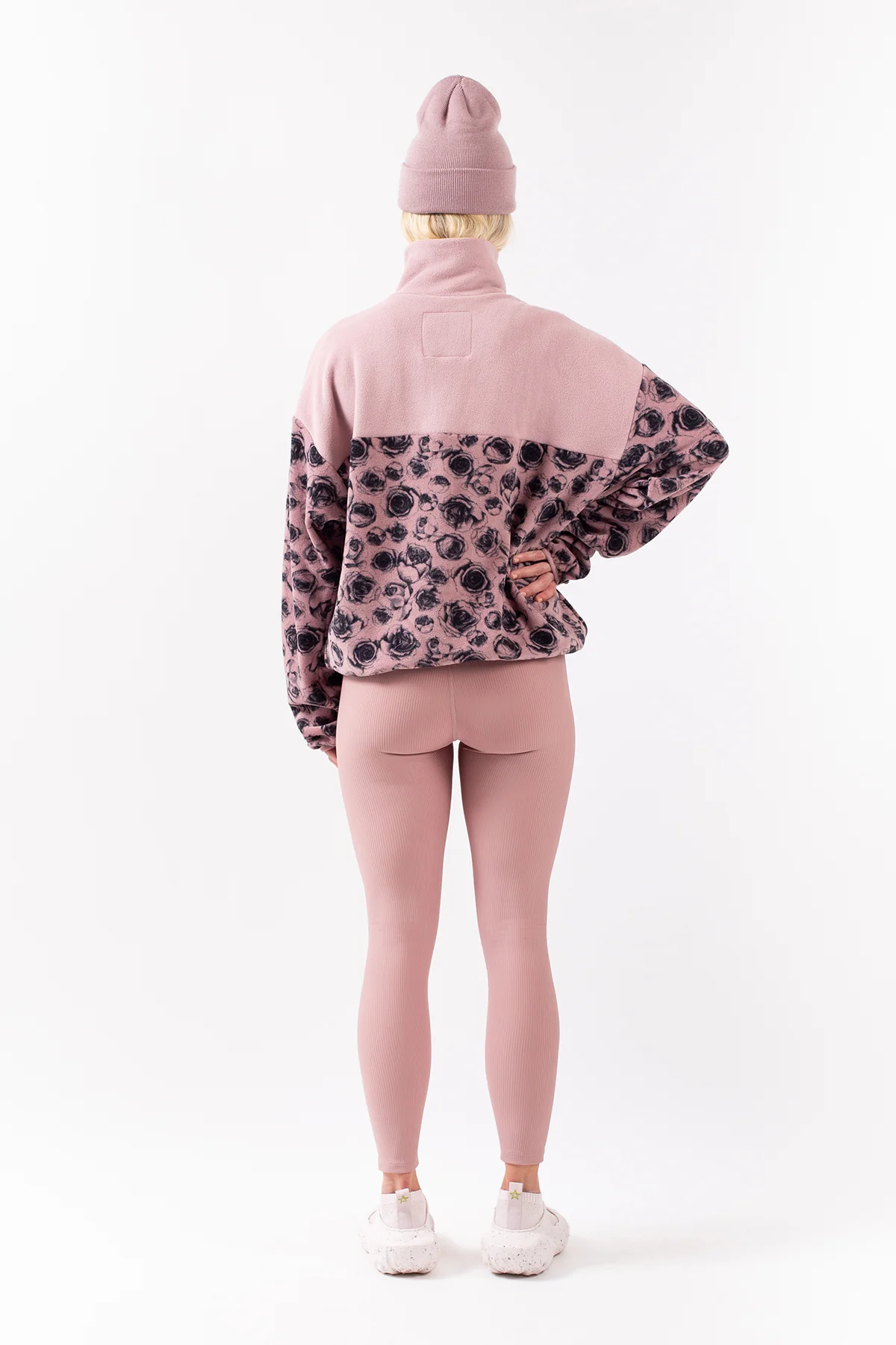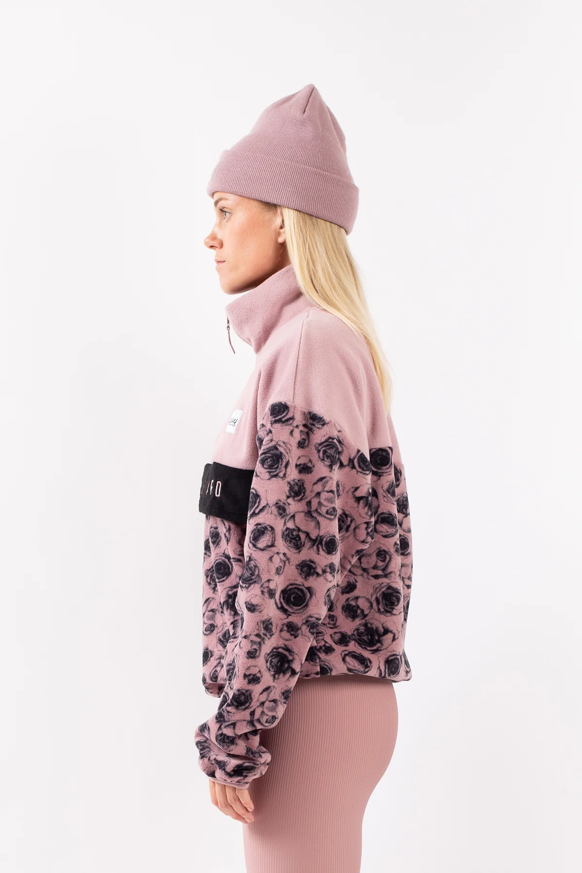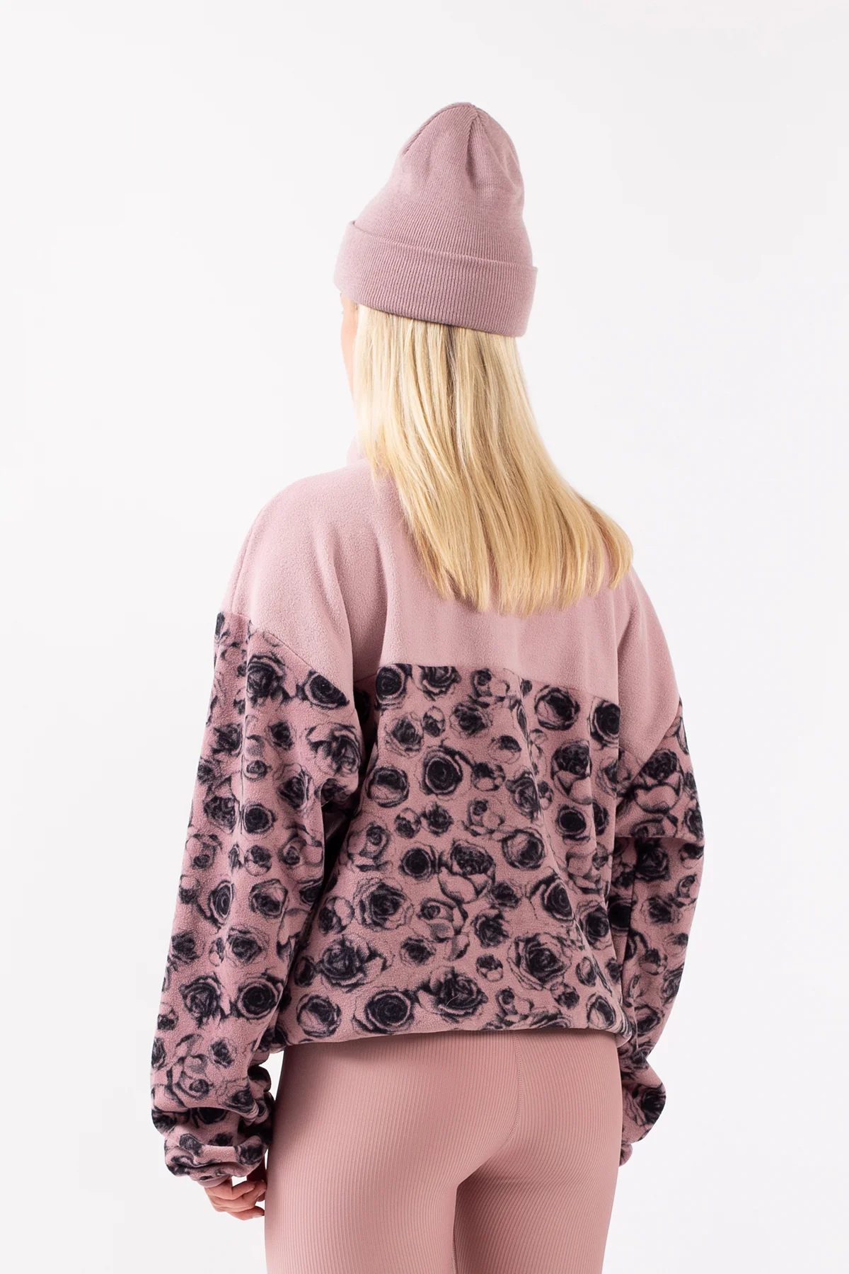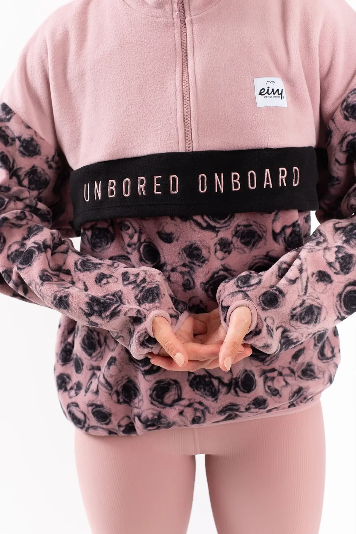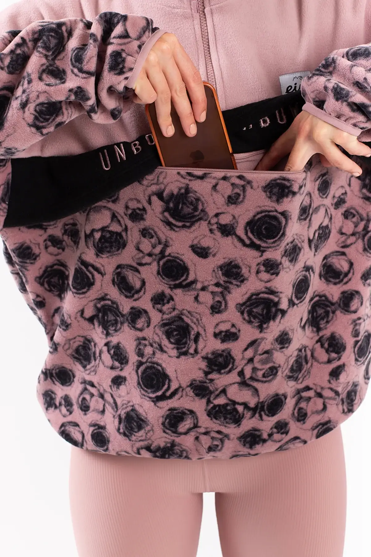 Ein angenehm weicher Fleecepullover in leicht oversized Passform für einen auffälligen Look, im Rosa Blumenprint. Der warme Kragen lässt sich dank den YKK®-Reißverschluss öffnen und schließen, ebenso die geräumige Fronttasche.