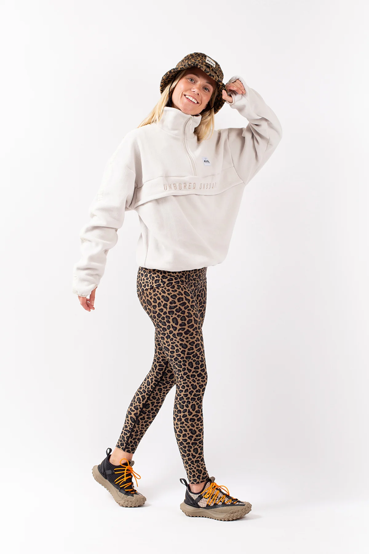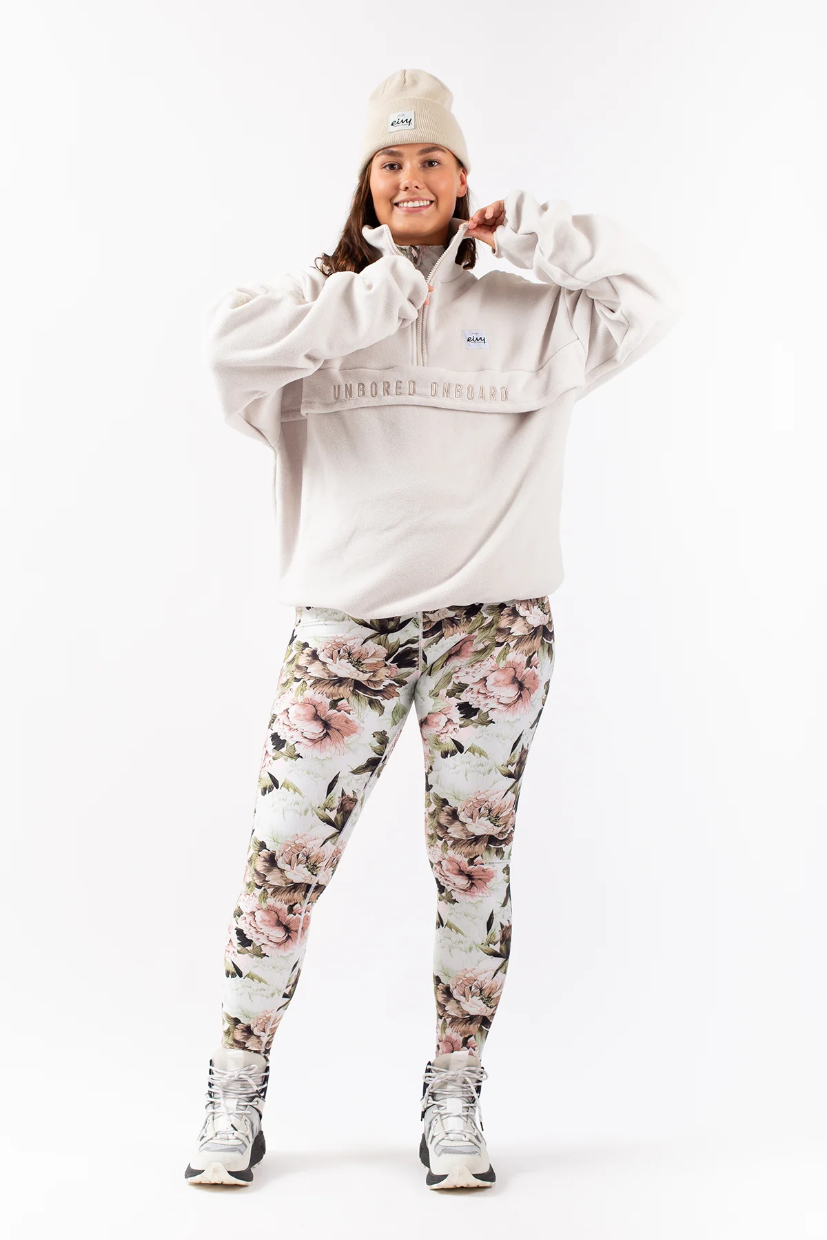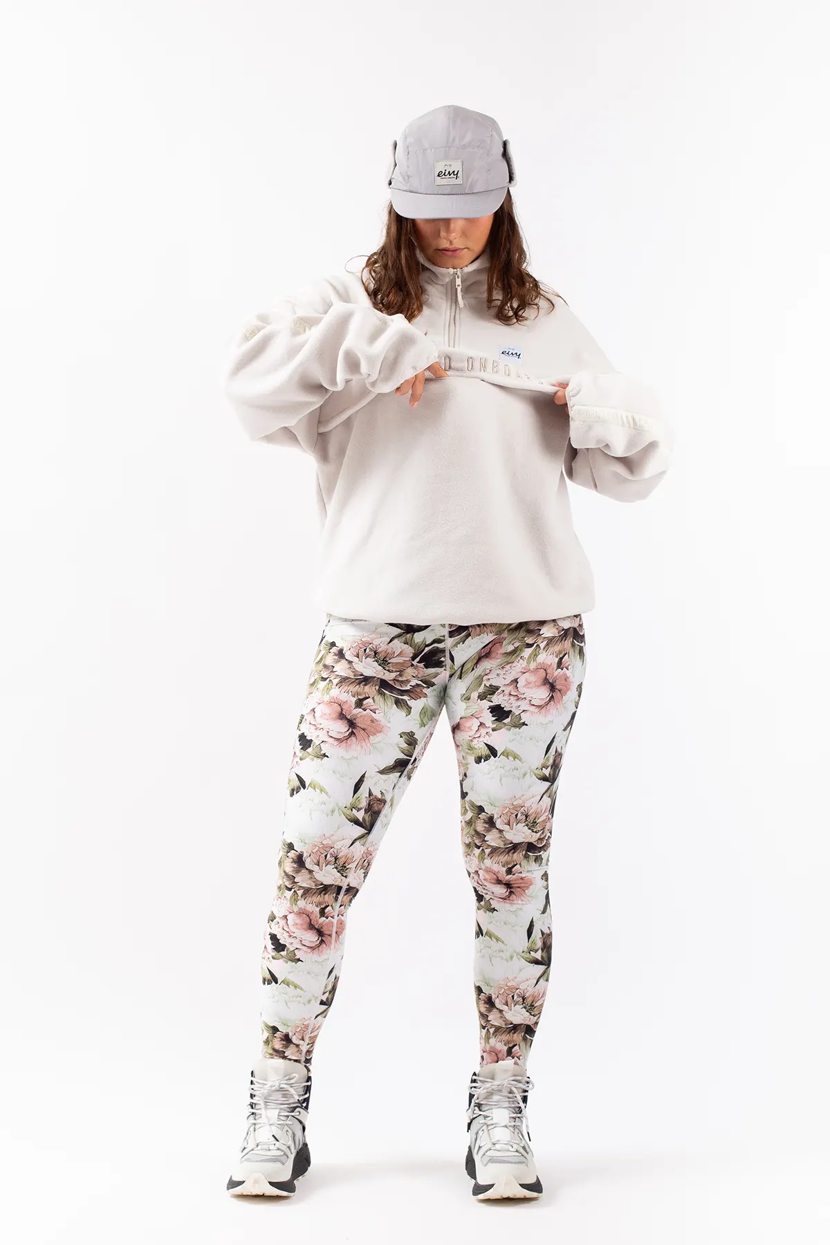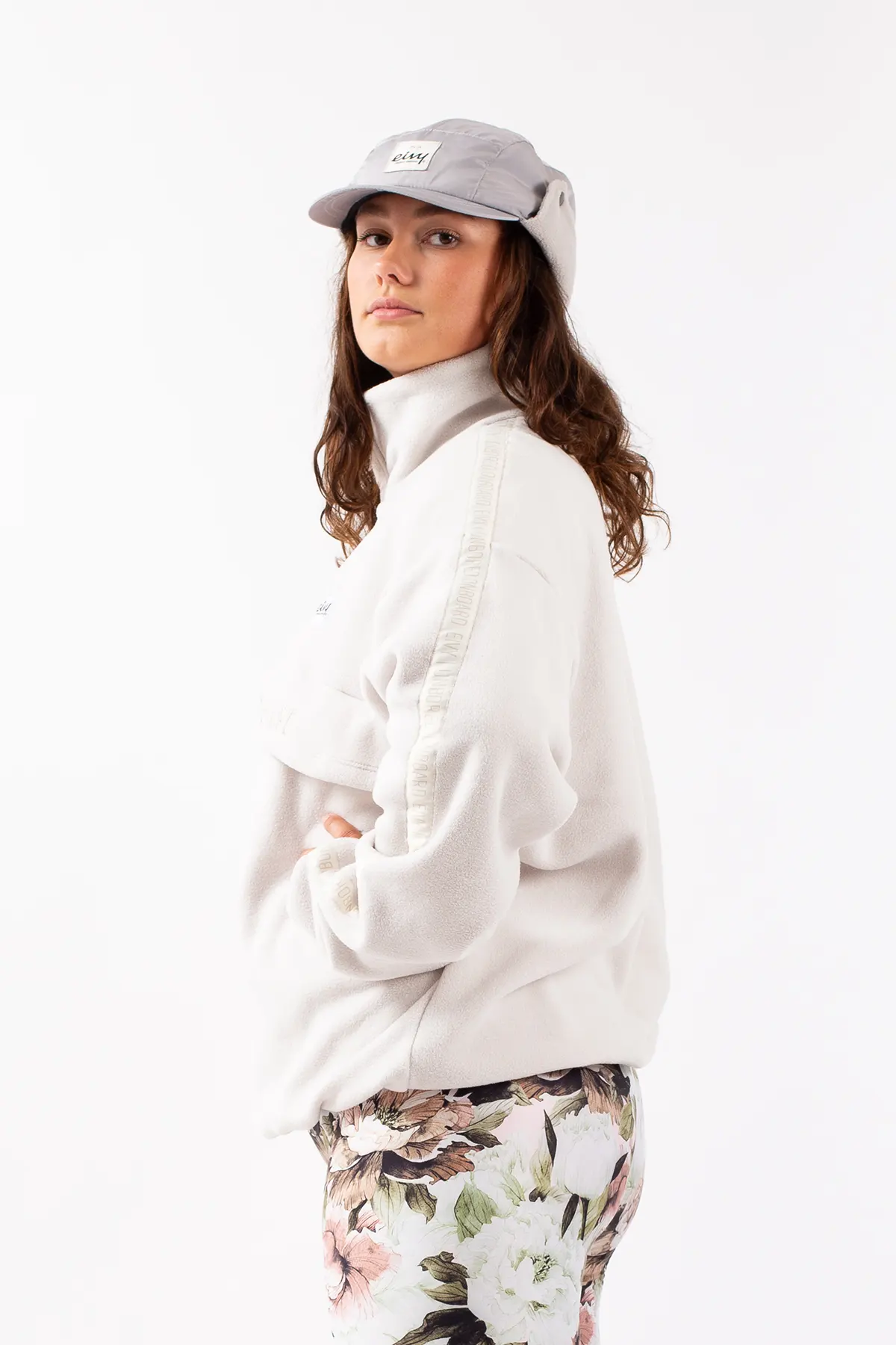 Reduzieren Sie Ihren Fußabdruck – Global Recycled Standard®-Gewebe für geringeren Material-, Wasser- und EnergieverbrauchAlice hat blonde Haare, ist 169 cm groß und trägt Größe S