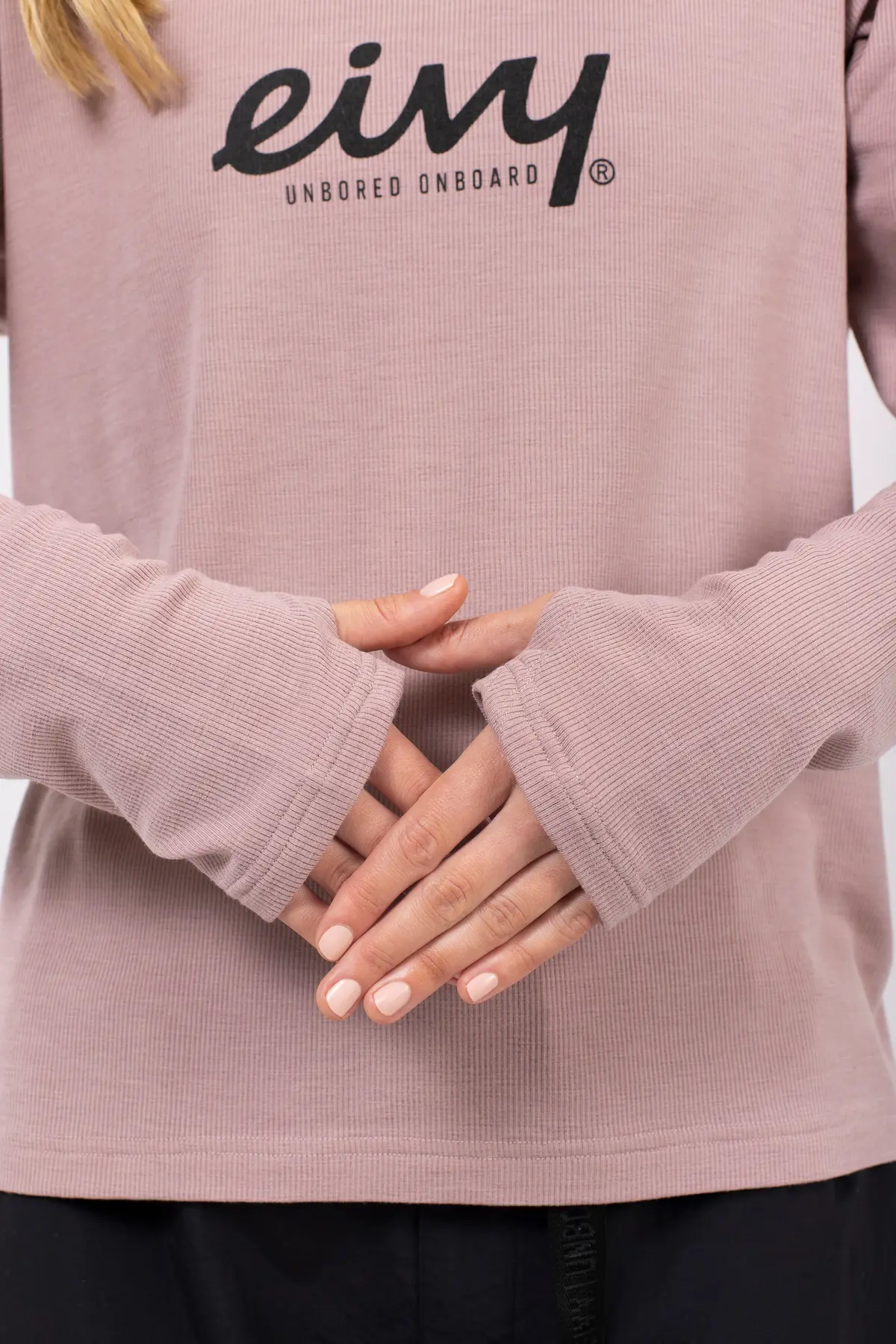 Les coutures flatlock préviennent les frottements, et les passe-pouces maintiennent les manches bien en place.