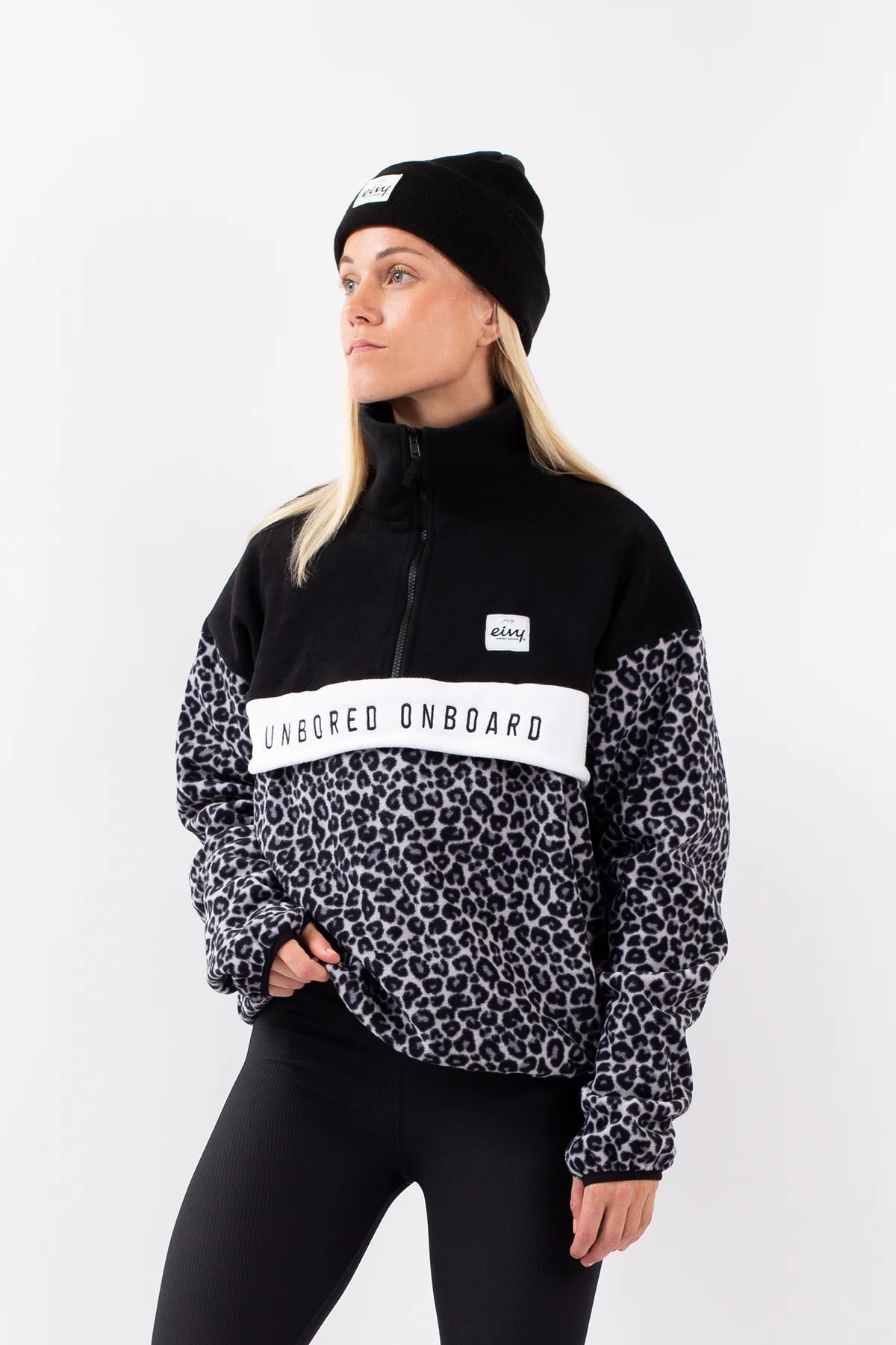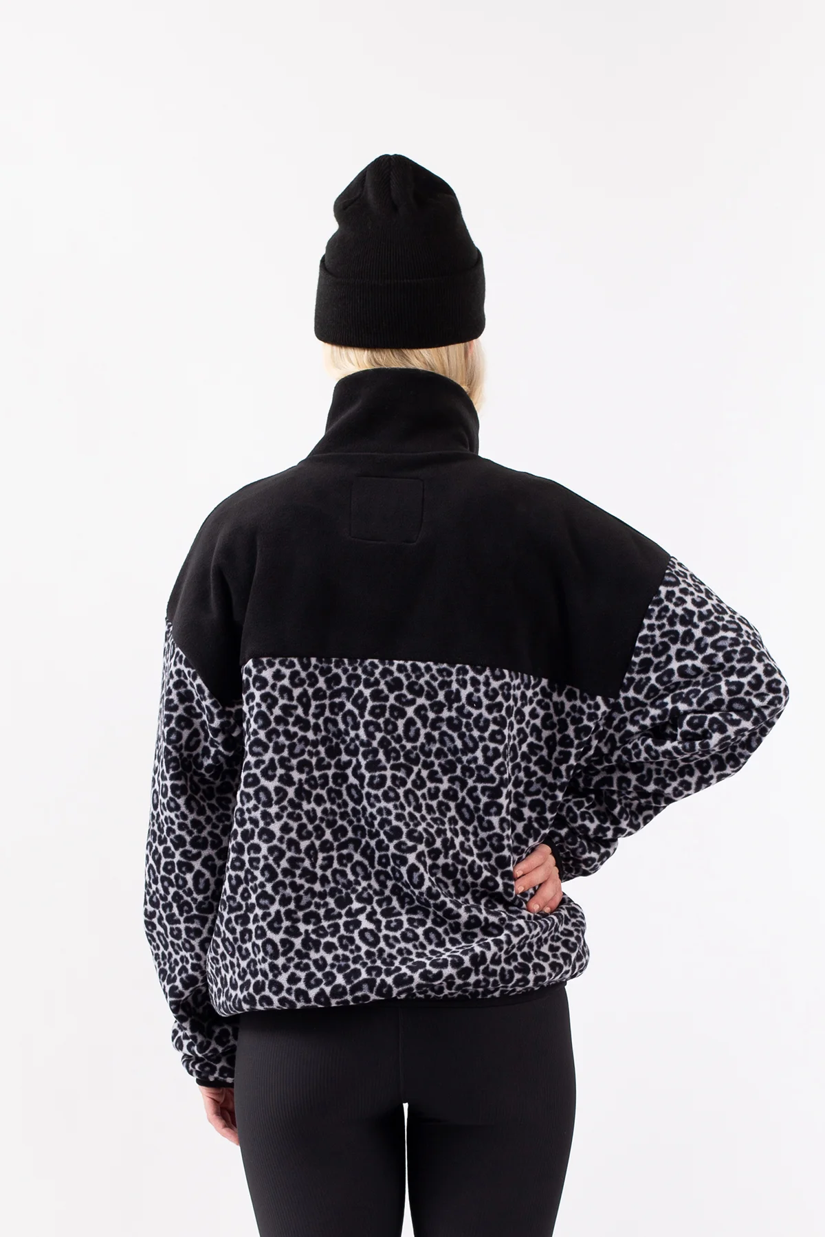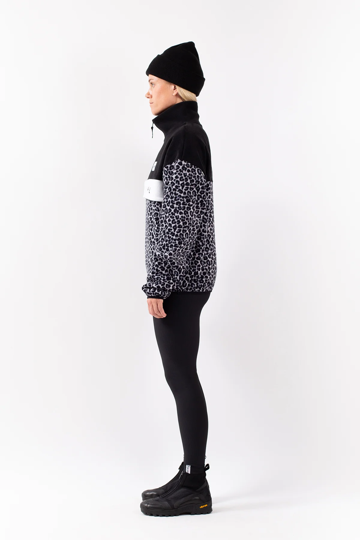 A comfortable soft fleece in a slightly oversized fit for a bold look, in a light leopard pattern. The warm collar can be opened and closed thanks to the YKK® zipper, as well as the spacious front pocket.