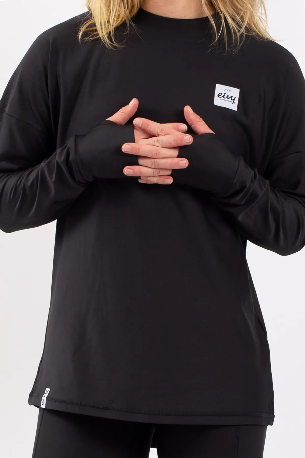 MultiFUNctional longsleeve base layer with a slightly oversized fit, extended back and integrated thumb loops. Developed without a neckwarmer to replace as many garments as possible when you are packing whether it's summer or winter, for snowboarding, skiing, yoga, working out or exploring new countries that's coming up.