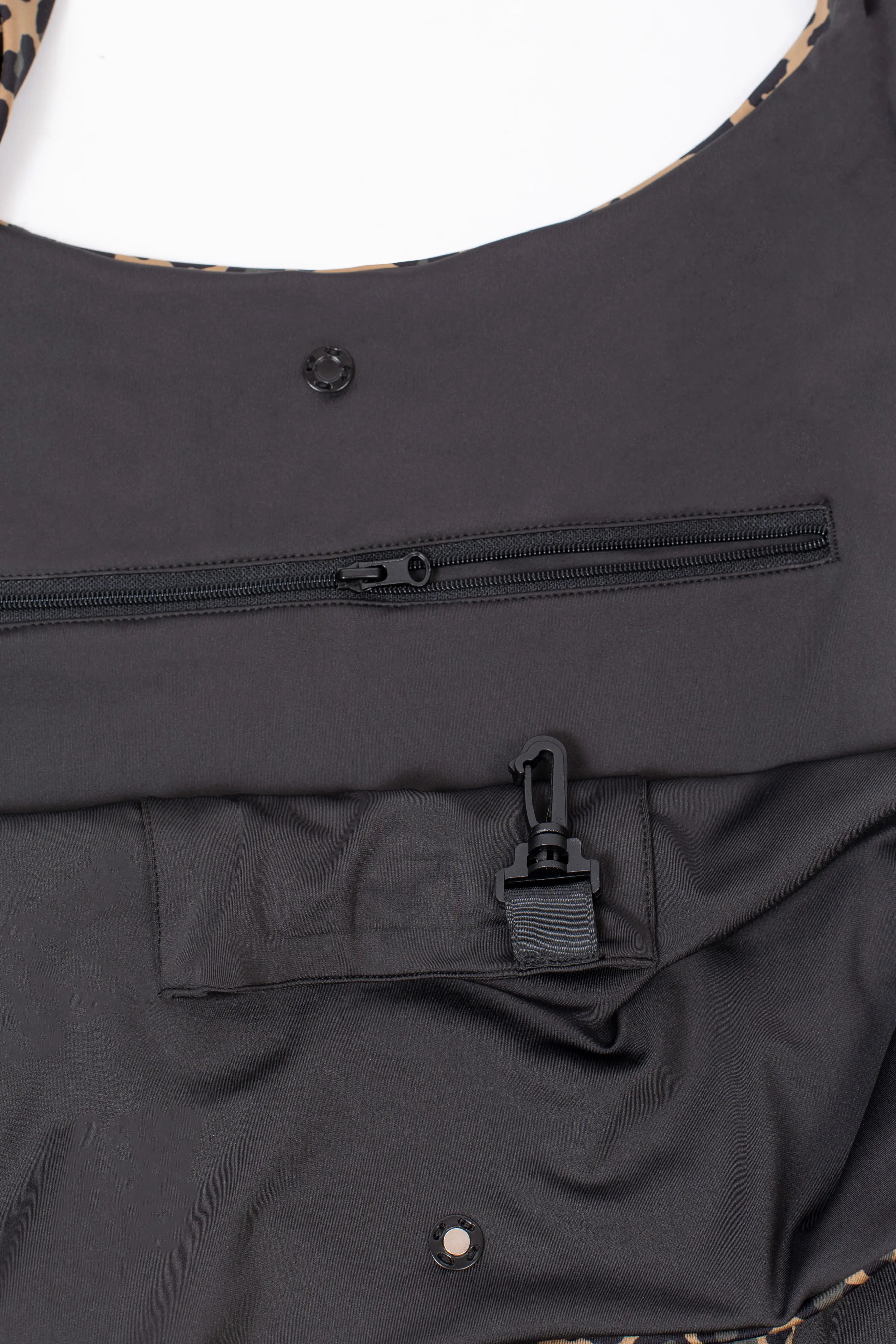 Den ultimata axelväskan i Leopardmönster för alla dina äventyr - oavsett om det är för en storhandling eller en chill dag på stranden. Tillverkad av stretchigt tvålagersmaterial som expanderar efter behov, vilket gör att du kan lita på att den rymmer allt du behöver ha med dig. Blir det för tungt att bära på axeln kan du ta på dig den som en ryggsäck.