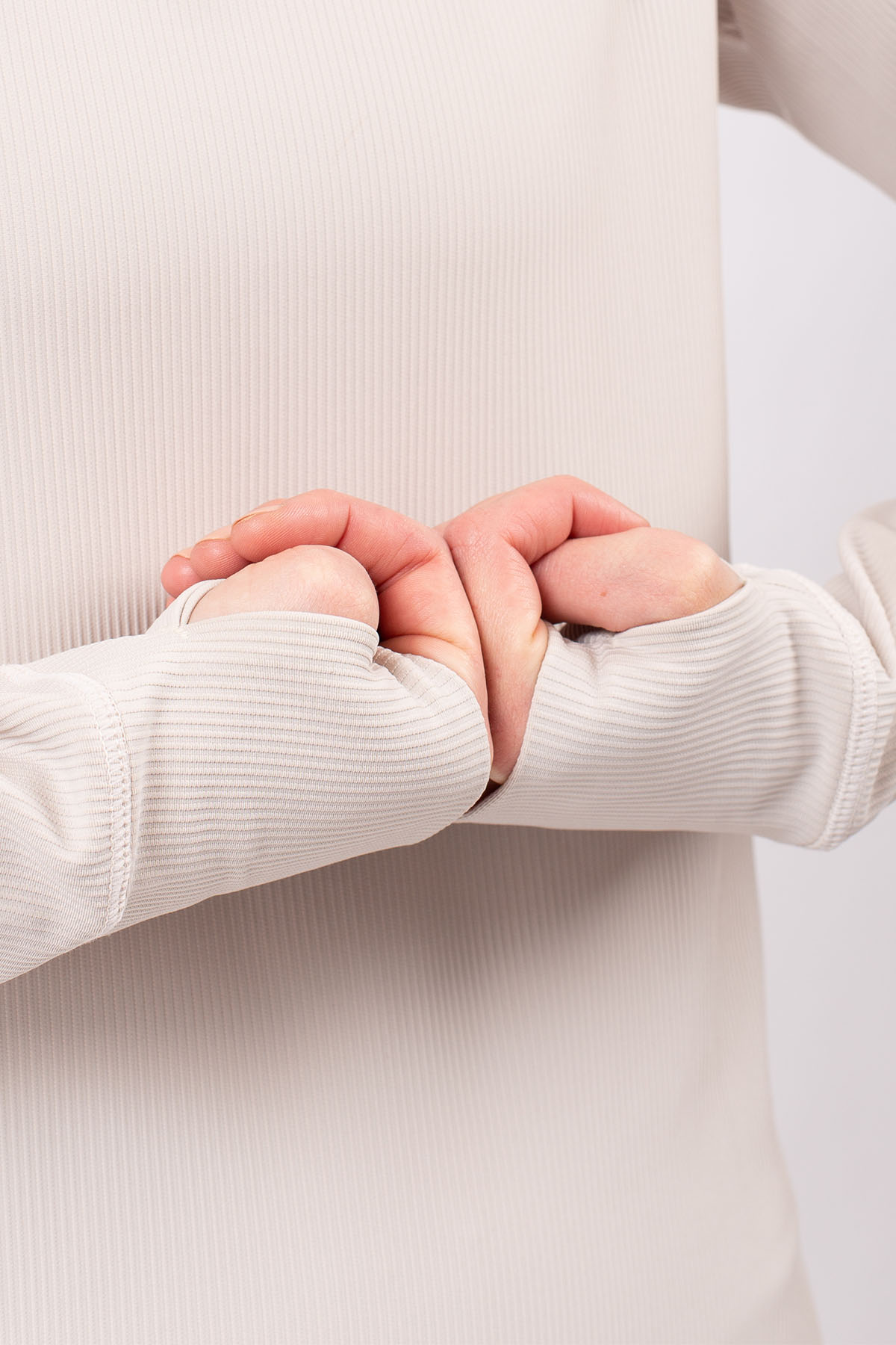 Förhindra att frysa med vår vita ribbade långärmade underställströja Icecold Rib Top som kombinerar funktionalitet med streetfashion. Den integrerade fleecefodrade kragen och det förlängda ryggslutet gör dig redo för kalla vinterdagar på din snowboard eller dina skidor och andra äventyr i naturen eller vardagen. Flatlocksömmarna förhindrar skav och de integrerade tumhålen håller ärmarna på plats genom alla dina äventyr.